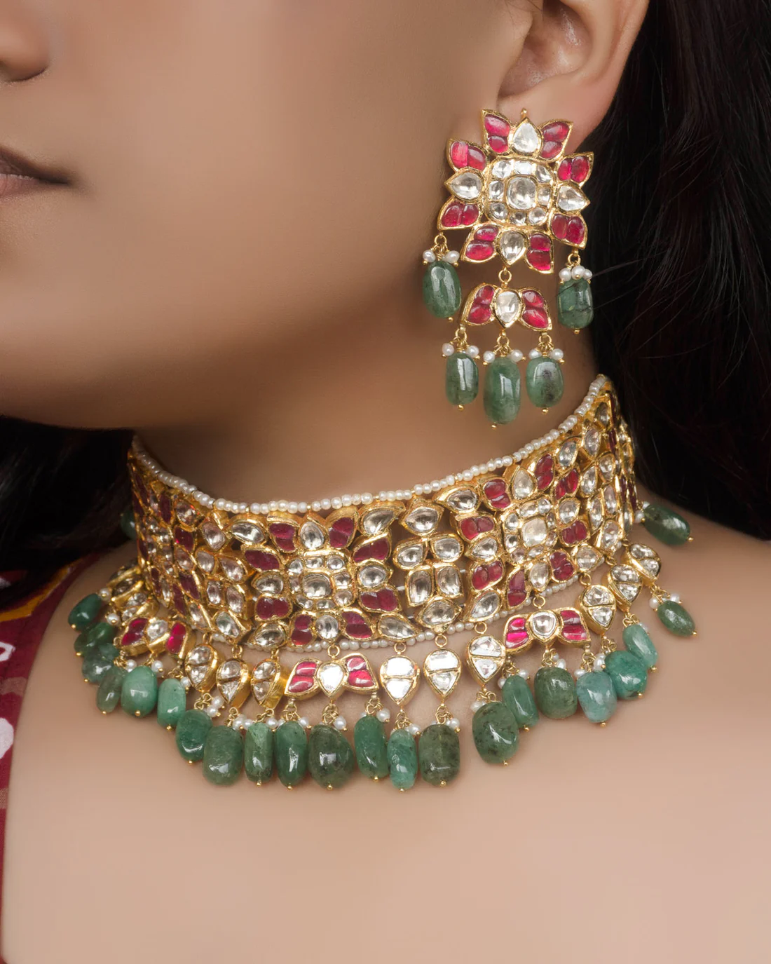 / Ella Choker and Asha Earrings Jadau Polki Set