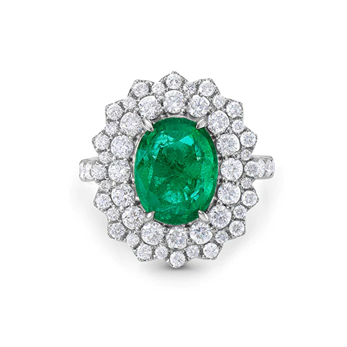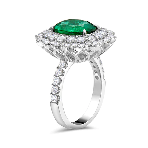 Emerald And White Diamond, 18K White Gold Ring
