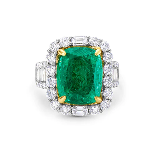 / Emerald And White Diamond, 18K Yellow Gold Ring