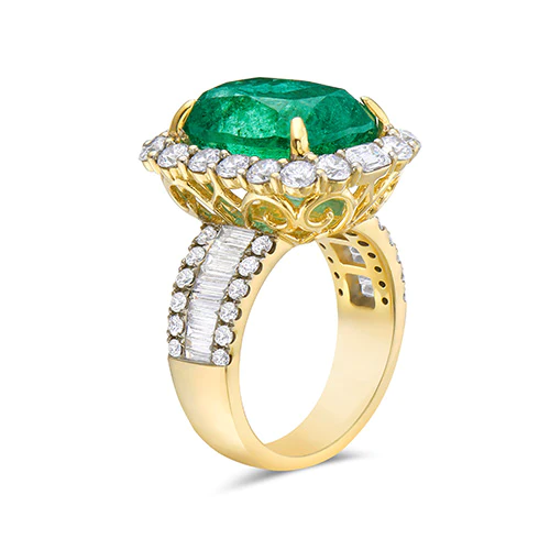 Emerald And White Diamond, 18K Yellow Gold Ring