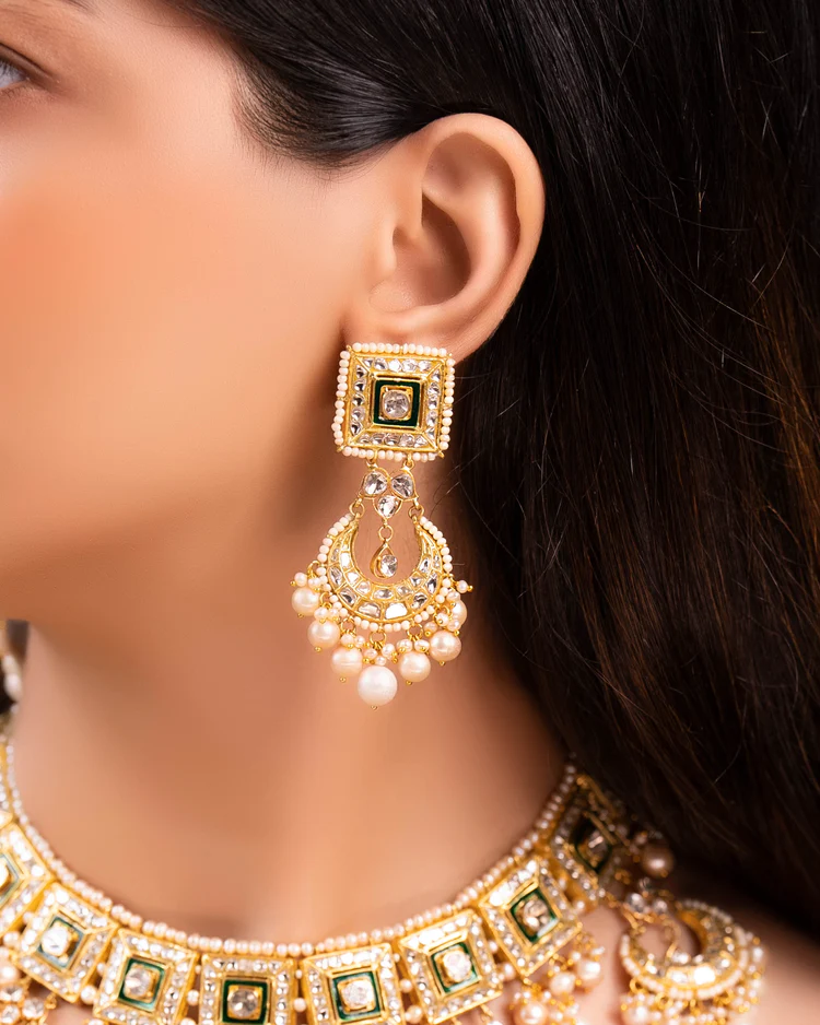 Samara Necklace And Parisha Chandbalis Polki Set